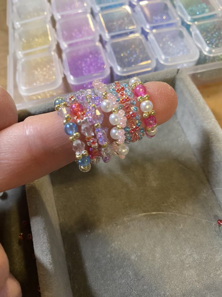 本日もビーズアクセサリー作成中🌸楽しいー🎵